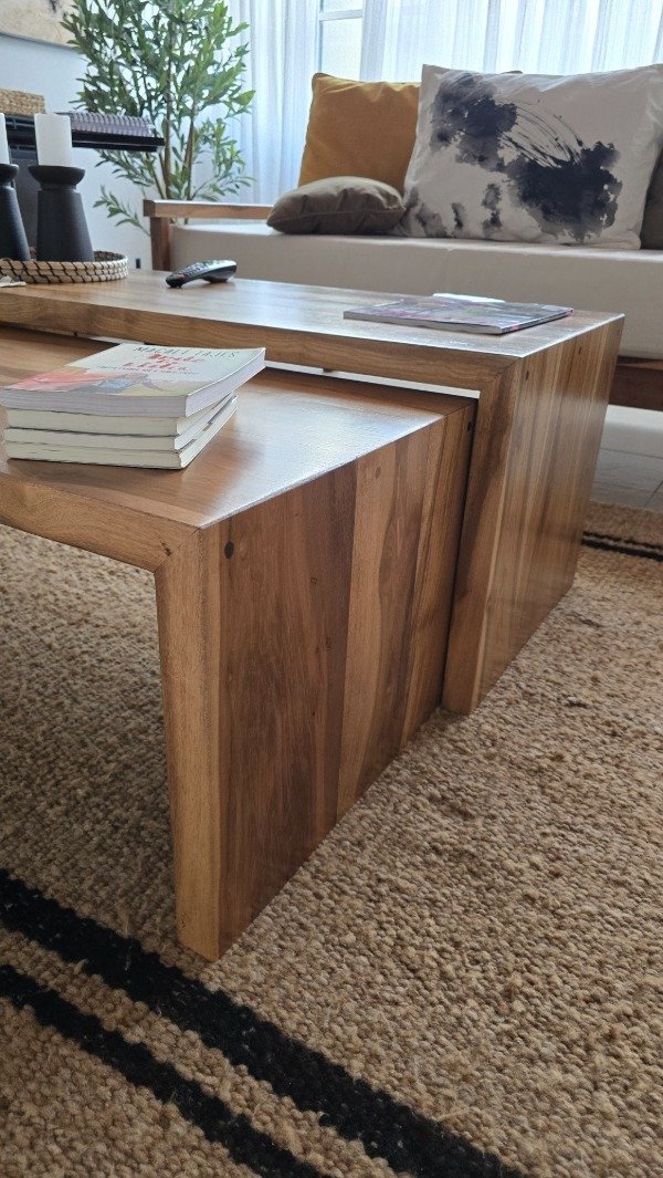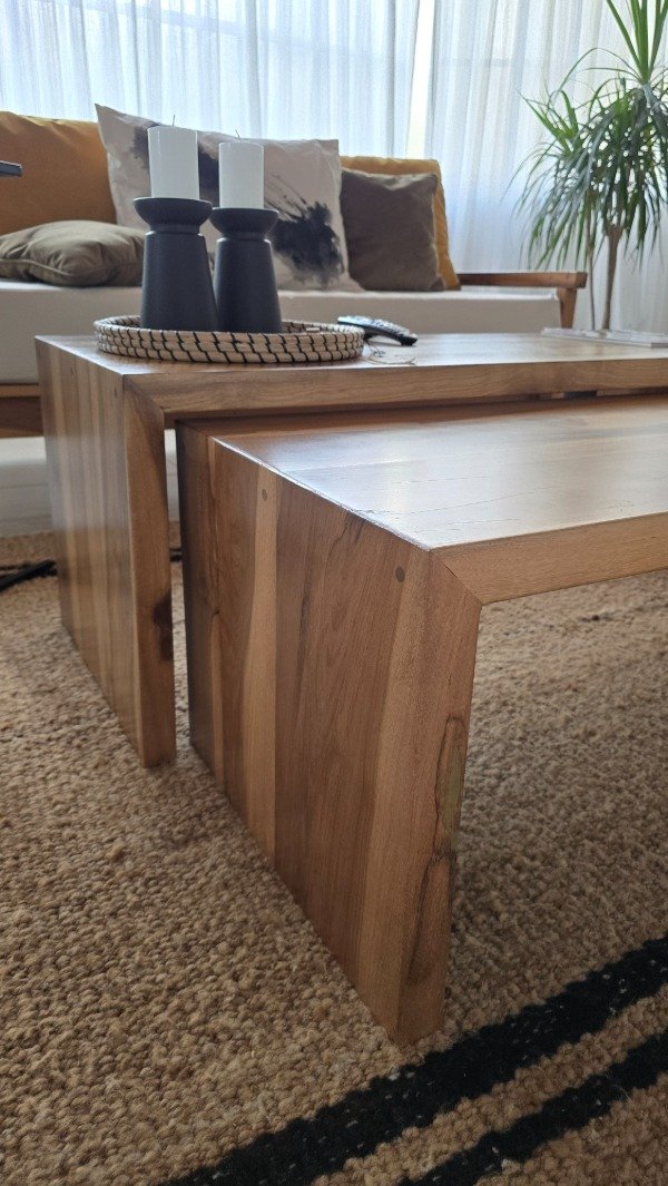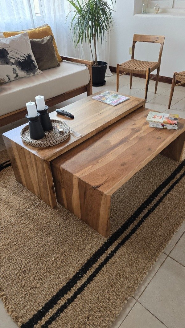 Mesa Ratona de madera maciza, en las imágenes de Petiribi, y las mellizas de Paraíso.